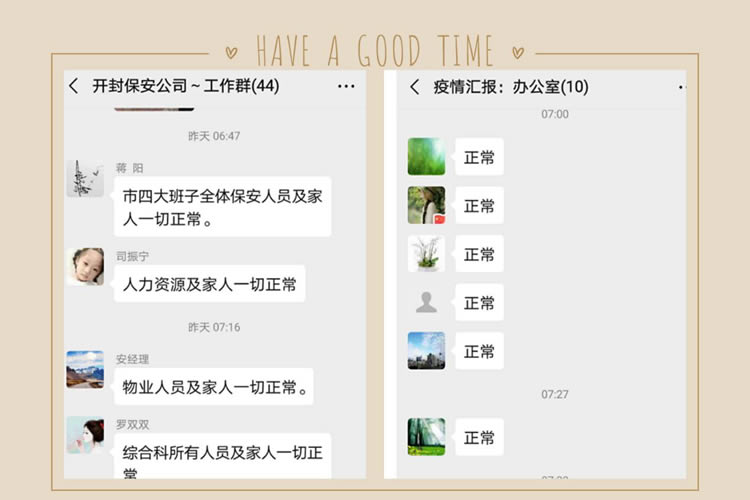 1、加強(qiáng)安全管理責(zé)任。切實(shí)履行職責(zé)使命,全員排查并填報(bào)《開封市保安服務(wù)有限公司在職職工新型冠狀病毒感染肺炎疫情防控排查表》,及時(shí)掌握在職職工、配偶、子女及其親戚的健康狀況。建立每日?qǐng)?bào)告制度、24小時(shí)值班制度、登記制度、信息上報(bào)等,全力做好疫情防控工作。